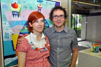 Polona se v slednjem razlikuje, njen realizem je sladko trpek izpeljan iz grafičnega ustvarjanja in črtne risbe. Zaradi gostobesedne pripovedi veliko platno učinkuje kot ravnokar tiskana površina mnogih grafičnih plošč, ki jih je avtorica sestavila v nov likovni ansambel. Pri obeh avtorjih so motivi kot glasbena zvenenja in kot odmev pravljičnega sveta. Razstava bo odprta do 30 .junija 2014.