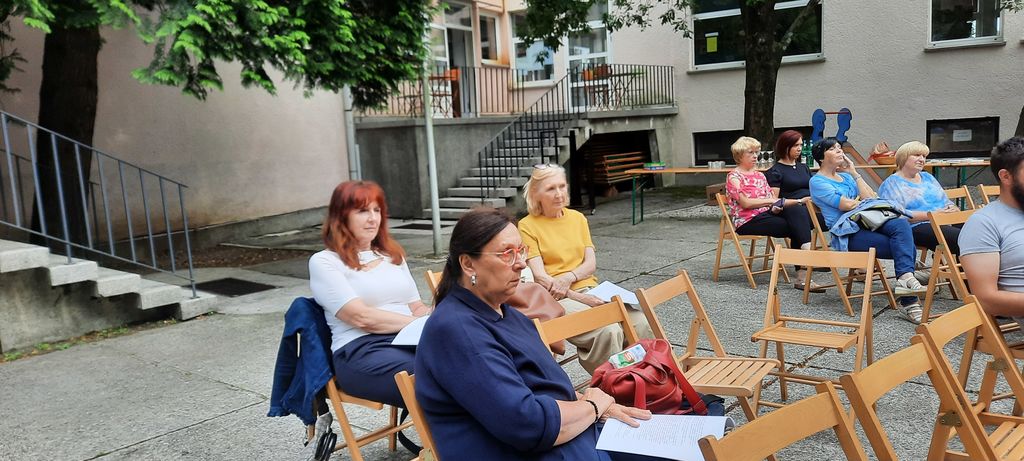 Sedem avtorjev (Lara Brankovič iz Ajdovščine, Dominik Kobol iz Vrtovina, Liljana Homovec iz Črnega Vrha nad Idrijo, Tjaša Živec iz Vitovelj, Mihaela M. Tihelj iz Vipave, Mirjana Majer Babič iz Kopra in Zinka Puhan iz Celja) je svoje tekom dneva napisane zgodbe tudi prebralo na zaključnem dogodku na letnem vrtu knjižnice.