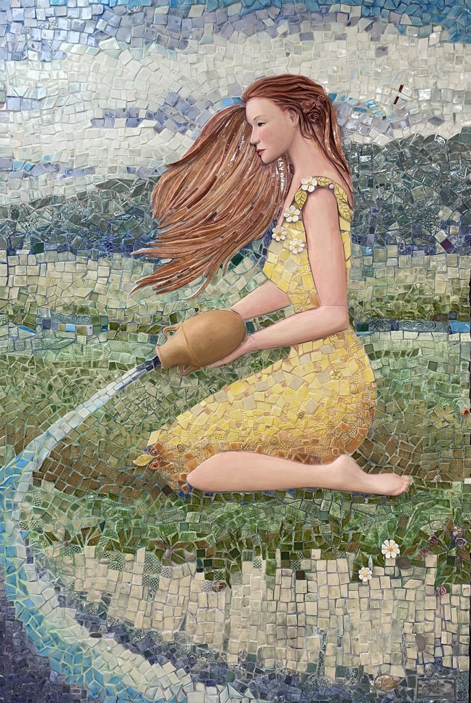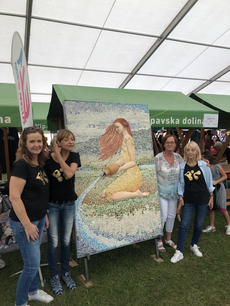 Idejni vodja mozaika je bila vseskozi akademska slikarka Mojca Gulič, ki je najprej ustvarila osnovni likovni koncept. Nato je skupina petih umetnic z natančnostjo in skrbnostjo sestavljala mozaik, košček za koščkom, dve leti. Člani društva si iskreno želijo, da bi mozaik 'Zarja', ki prikazuje čudovito deklico iz Vipavske doline, obdano z mogočno goro Čaven, slikovito reko Hubelj, silovito burjo, zelenimi polji, rodovitno zemljo ter simbolično vključuje tudi letalo in zlato ribico, našel svoje mesto, kjer bi lahko izpolnil svoj pravi namen in očaral obiskovalce.