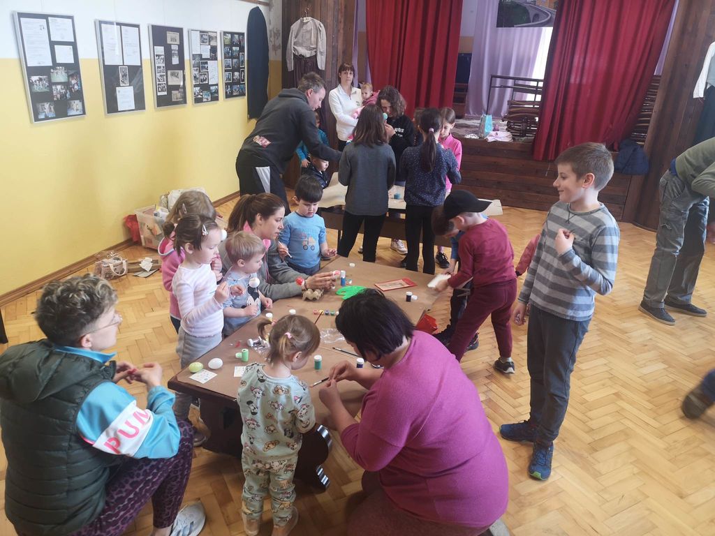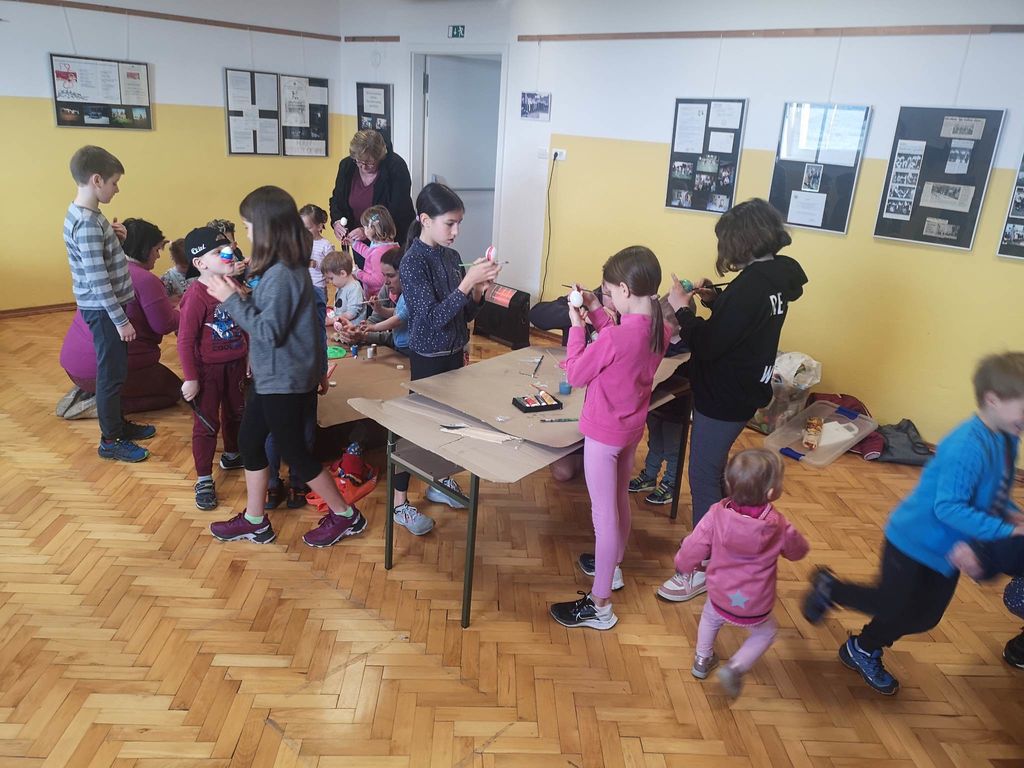 Prišel je april in tisti mesec, ko je na koledarju velika noč. Tako so se otroci na prvi april ponovno zbrali v šoli in pod okriljem ŠKTD Kamnje-Potoče začeli z barvanjem pirhov. Udeležba je bila tokrat številčnejša. Da pa ni vse samo ustvarjanje, so tokrat pripravili še manjše presenečenje - iskanje zaklada. Ob namigih, ki so jih prejeli ob skritih listkih, so hitro prišli do zaklada. Le kaj se skriva v skrinji? Kaj pa drugega kot čokoladna jajca. Otroci so hitro vzeli vsak svojega. Da pa niso odšli praznih trebuščkov, so se ob koncu še okrepčali s 'pica polžki'. Zahvala gre vsem otrokom za udeležbo in seveda gospodinji, ki je pripravila prigrizke. Se vidimo na novih ustvarjalnicah v še večjem številu.