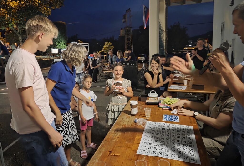 Med družabnim srečanjem je bilo poskrbljeno za otroke z napihljivim gradom in v nadaljevanju s tombolo in tehtanjem pršuta. Prireditev s je v lepem vremenu potegnila globoko v noč.
