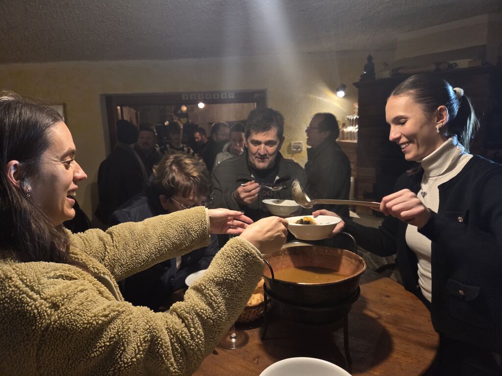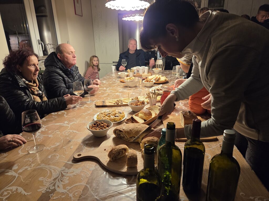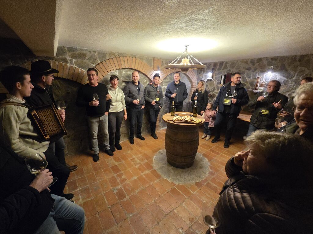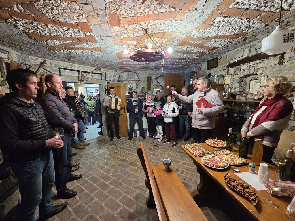 Dobra družba je nosila požegnano popotnico s seboj od vrat do vrat in vmes so se ponujale mizice z raznimi dobrotami. Okušali smo novo vino, pridelke zadnjega, kar bogatega letnika s sadjem in drugimi pridelki. Ker je bil čas kolin, so zadišali ocvirki in klobase, tako navadne, kot kožnate. Ni manjkalo niti toplih jedi na žlico, da so pogrele mrzle obiskovalce.