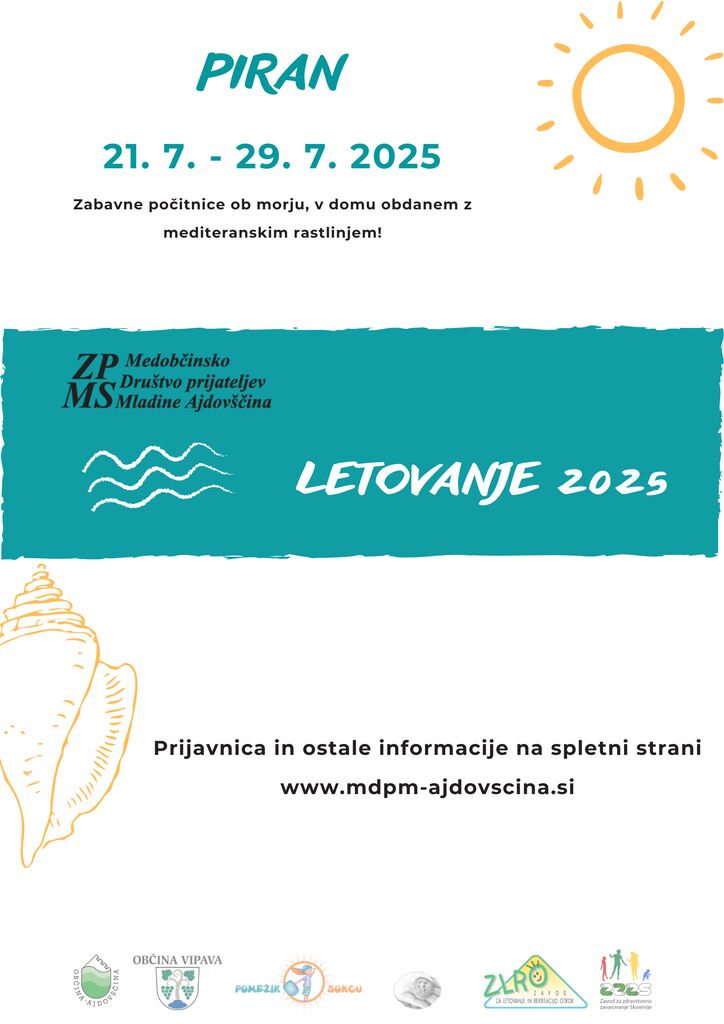 Tudi letošnje poletje v Medobčinskem društvu prijateljev mladine Ajdovščina pripravljamo prav posebno letovanje za otroke, ki si želijo preživeti počitnice na aktiven, ustvarjalen in zabaven način – ob morju, v naravi in v družbi sovrstnikov. Tokrat se bomo odpravili v eno najlepših obmorskih mest v Sloveniji – v slikoviti Piran.