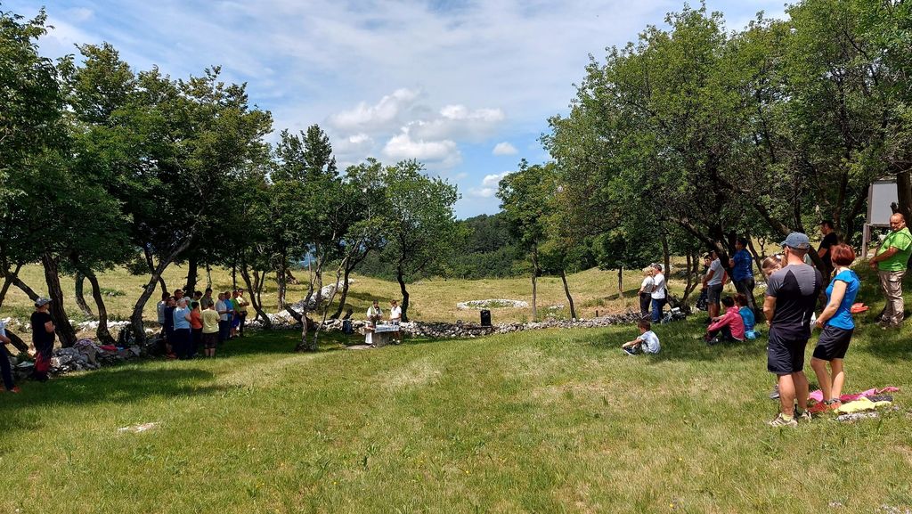 Ko so pohodniki prispeli na sveti Pavel, jih je pričakal harmonikaš, ki je s svojo glasbo pričaral pravo praznično vzdušje. Ob 12.00 je sledila sveta maša, ki je bila čudovit zaključek poti. Po maši so se pohodniki zbrali ob okusni vipavski joti. Topla jed je pohodnikom povrnila energijo in jih prijetno okrepčala po prehojeni poti. Ob dobri hrani in pijači so si pohodniki izmenjevali vtise in se veselili druženja.
