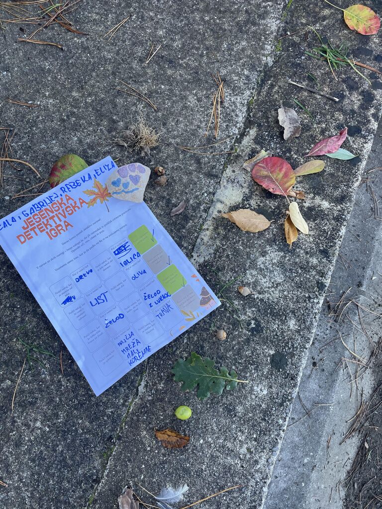 ● jesenski gozdni detektiv, v katerem so iskali jesenske zaklade iz gozda, kot so listi, cvetovi in plodovi,