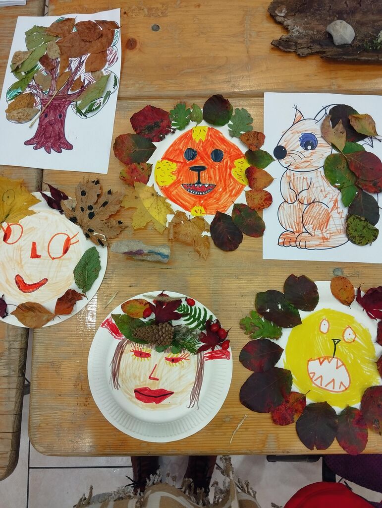 Delavnice so vključevale tudi ustvarjalni del. Otroci so najprej nabrali naravne materiale – kamne, liste, vejice in druge jesenske zaklade. Iz njih so izdelovali živali iz listja ter različne okraske in domiselne izdelke.