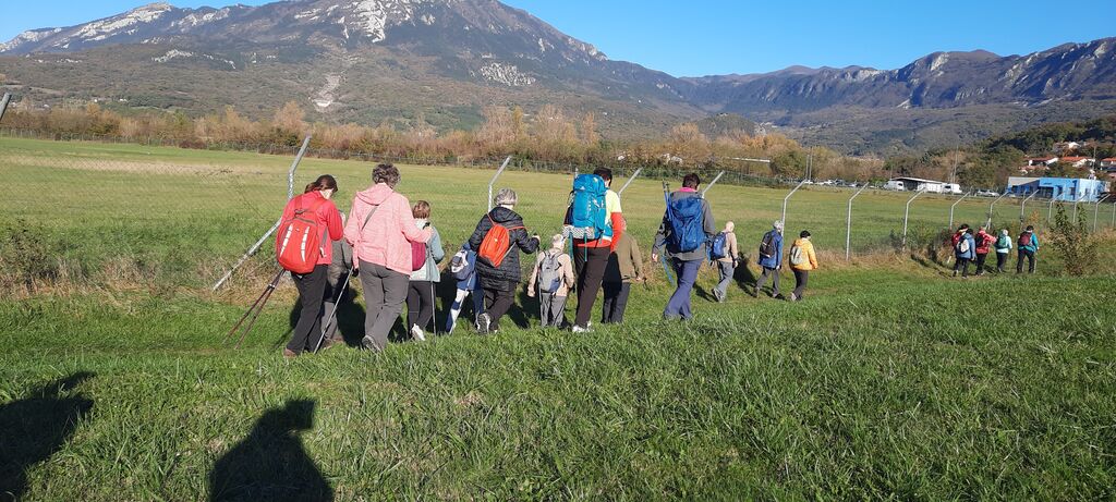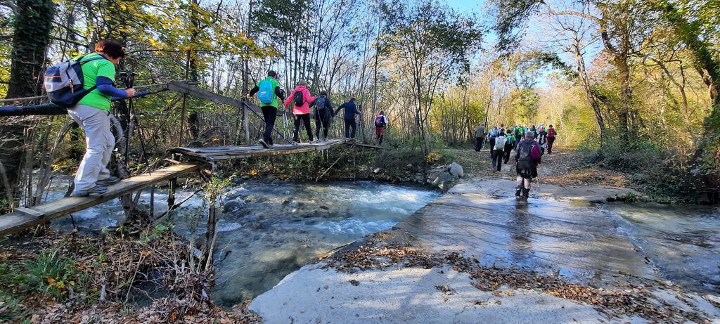 Pri Čohih smo končali prvi del raziskovanja žičnice. Nadaljevali smo k izviru Hublja, kjer je nastala skupinska fotografija. Vračali smo se po cesti, pri elektrarni smo poskušali prečkati reko Hubelj, a nas je odvrnila višina vode, zato smo nadaljevali po cesti. V prijetni družbi smo preživeli lep sončen dan, z malo ajdovske burje in polni novih spoznanj v kavarni Ave končali četrtkov pohod za dušo in srce.