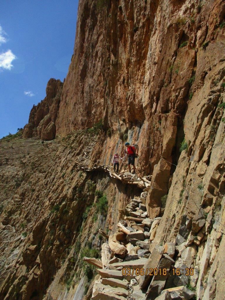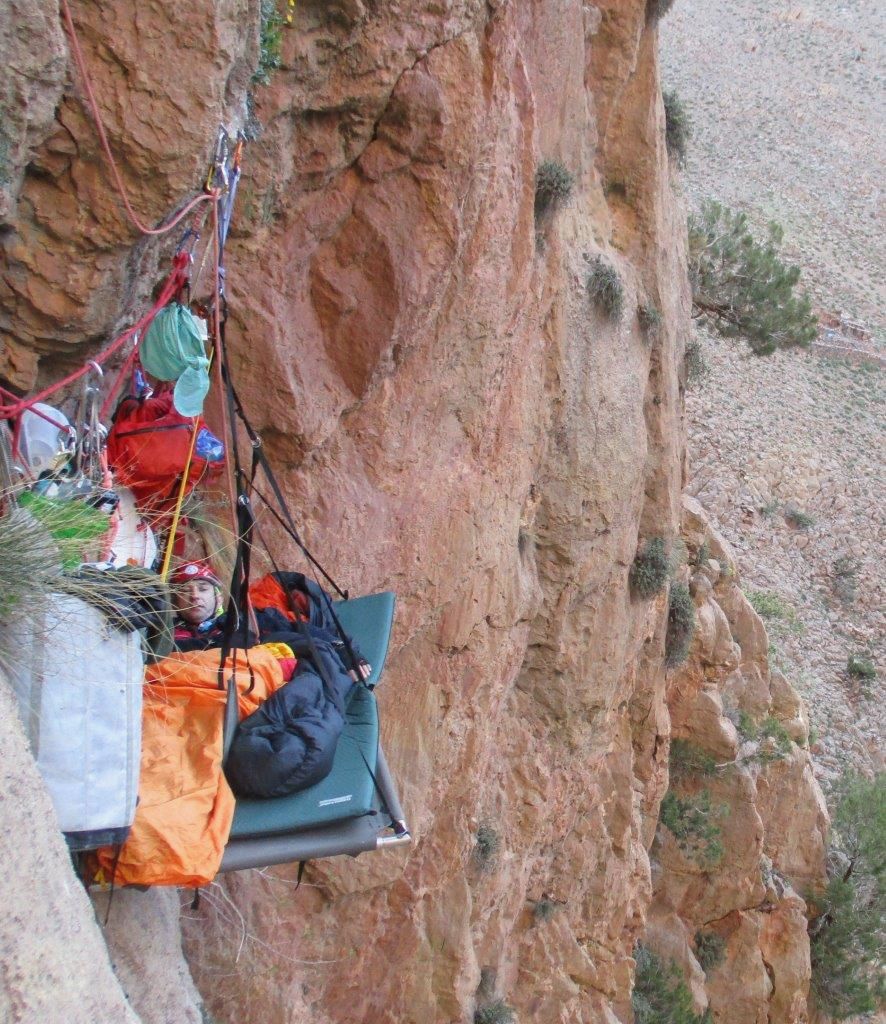 Po mirni noči in prenočevanju v steni je sledil nov dan. 'Šerpe' smo dostavljali material do stene (vsakič izboljšali čas dostopa), preostali pa so opravljali dostavo materiala po vrveh do vodilne naveze, ki je pridno napredovala v višino. Napredovanje je sicer začasno prekinila nevihta, ampak ob lepo zavarovani smeri se je ekipa hitro in varno umaknila strelam nevihte in debelim dežnim kapljam, ki so neusmiljeno tolkle z neba po steni, kjer že vsaka najmanjša napaka ne pomeni dobre popotnice. Tretji dan, po ponovnem celodnevnem plezanju na konicah prstov nog in rok, je vodilna naveza osvojila vrh stene in se pozno zvečer z ostalimi varno vrnila v Taghio na prepotreben počitek. Sledil je dan počitka za plezalce, ne pa tudi za 'šerpe', saj je bilo treba veliko materiala prenesti nazaj v Taghio. To je bila čudovita priložnost za še dodaten treking med okoliškimi gorami in uživanje v slikovitih razgledih. Peti dan se je ekipa sprostila ob bližnjem potočku, uživala ob pokušini različnih domačih šalamov in drugih mesnin, hkrati pa preizkusila lokalno plezališče, kjer je navrtala tudi novo smer. Medtem je Benjamin ponovno odšel k naši steni in skupaj z Maročanom Mohamedom v prvem poskusu uspešno preplezal novo smer imenovano 'Wajdovska Tarat', težavnosti 7c in dolžine krepko čez 300 metrov.