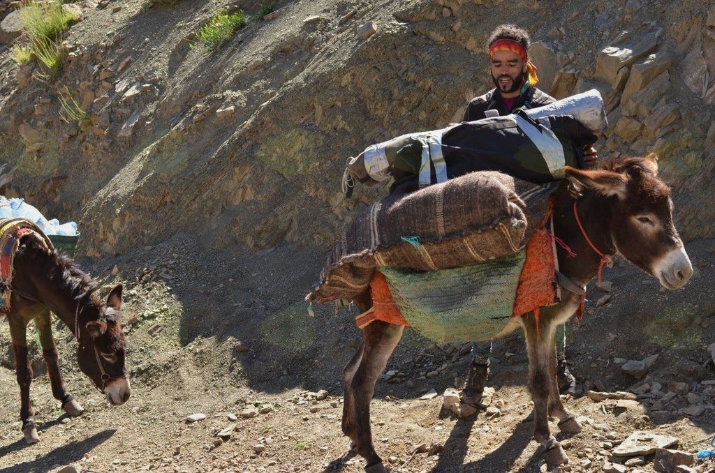 Za pakiranje celotne plezalne opreme je bilo potrebne kar nekaj kombinatorike in prilagoditev omejitvam v letalskem prometu, vendar smo kljub temu kontrolne preglede uspešno prestali vsi, z izjemo ene (vseh je bilo osem) radijske postaje, ki se je letališkim uslužbencem iz neznanega vzroka zdela sumljiva. V Marakešu nas je po pristanku letala pričakal voznik, ki nas je odpeljal v skoraj 300 km oddaljeno vasico Zaouiat Ahansal. Čez prelaze, ki se nahajajo na nadmorski višini preko 2700 metrov, nas je do vasice vodila zavita cesta, ki je pozimi neprevozna. Po kratki noči smo se skupaj z otovorjenimi osli odpravili še globlje v pogorje Atlasa ter po treh urah hoje dosegli našo 'bazno postajo', vas Taghio. Taghia, ki leži na skoraj 2000 metrih nadmorske višine, predstavlja izhodišče za poti, ki vodijo v številne soteske okoliških vršacev. Njihove navpične stene ponujajo neskončne možnosti za plezanje po že navrtanih, pa tudi še nepreplezanih stenah, ki so visoke preko 800 metrov in se lahko pohvalijo s težavnostnimi stopnjami vse do 'osmice'.