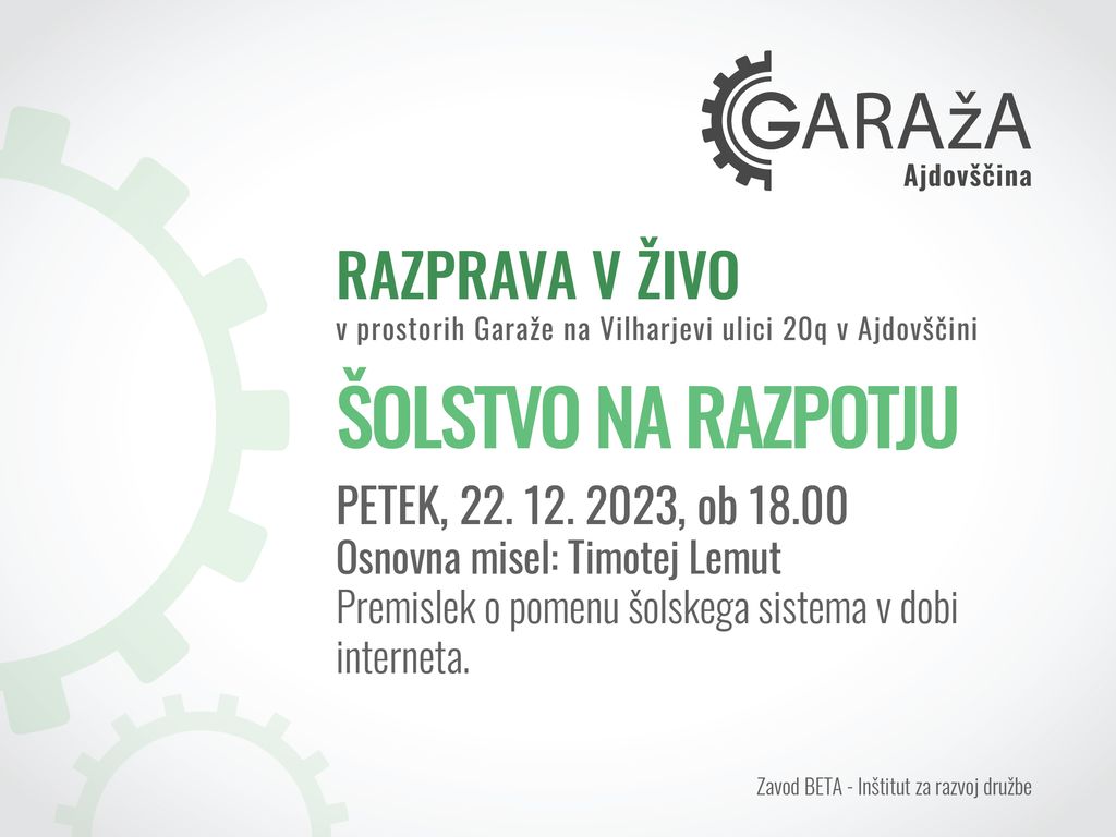 Zato vsi zainteresirani vabljeni, da se nam pri debati pridružite v petek, 22. decembra 2023 ob 18.00, v prostorih Garaže na Vilharjevi ulici 20q.
