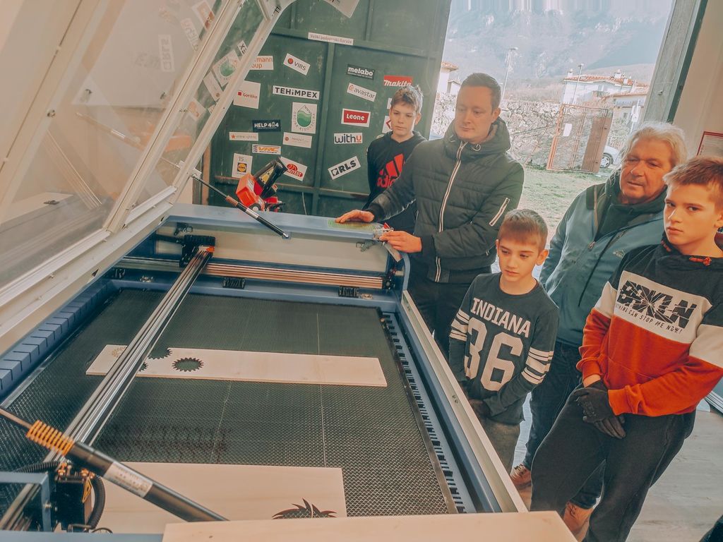 - različne materiale za obdelavo (les, kovina, pleksi steklo, filamenti za 3D tiskalnik …).