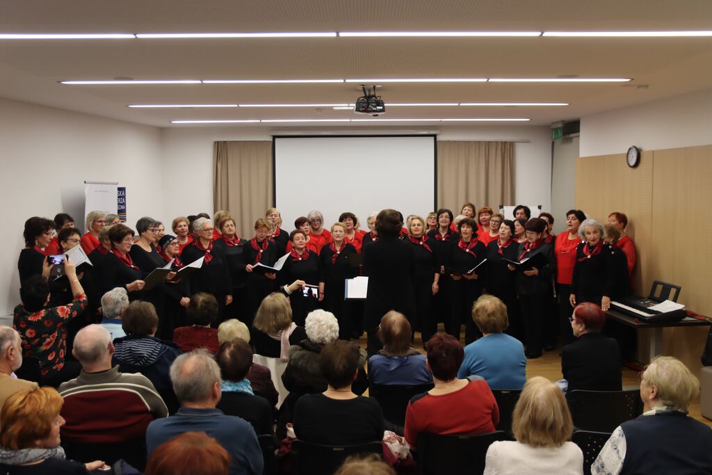 Pevke ŽePZ Večernica - DU Ajdovščina so bile v tednu kulture zelo aktivne. Pod vodstvom zborovodje Mirana Rustje so 13. februarja priredile koncert v prostorih Ljudske univerze Ajdovščina, kjer so srčno in ubrano pele skupaj z ŽePZ Rože iz Nove Gorice, pod vodstvom zborovodkinje Andreje Rustja. Oba zbora druži tesno prijateljstvo, veselje do petja in medsebojna druženja. Pele so narodne in ljudske pesmi, pesmi znanih slovenskih avtorjev, med drugim tudi avtorske pesmi in besedila Mirana Rustje, ter popevke, ki so že zimzelene. Koncert sta oba zbora zaključila s pesmijo Mirana Rustje - Zemlja. Poslušalci so vsako pesem pospremili z bučnim ploskanjem, s katerim so sporočali, da so pevke ogrele njihova srca. Sledilo je prijetno druženje pevk, njihovih svojcev, prijateljev, znancev. Pevke so predlagale, da bi skupno srečanje - koncert postalo tradicionalno, vsako leto.