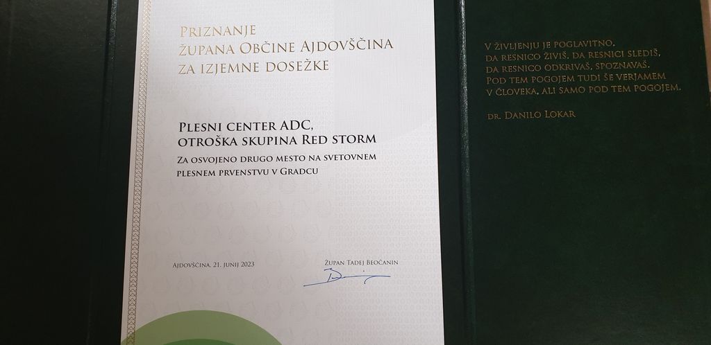 Pred zaključkom šolskega in plesnega leta je župan občine Ajdovščina pripravil sprejem za plesalce in se jim osebno zahvalil za njihove dosežke ter jim čestital. Dogodek je našim plesalcem predal sporočilo, da so videni kot ponos in dobrobit naši skupnosti.