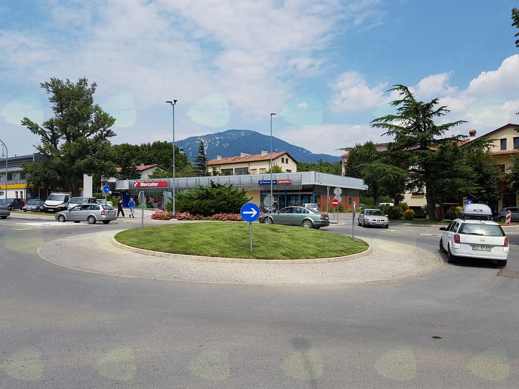 Tako je Studio Pika plus v podobnem stilu zasnoval tudi otok novega krožišča pri pokopališču. Da bodo otoki vseh treh krožišč v podobnem stilu, je novo travno rušo (s sistemom za zalivanje) v teh dneh dobil še najmanjši – v krožišču pri policiji (na fotografiji Matevža Brataševca).