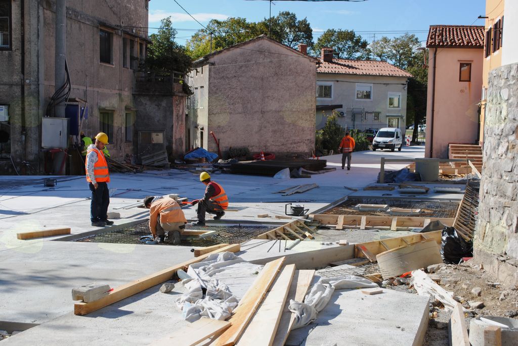 Ta dva kraka ne bosta asfaltirana, pač pa jima bo dal mestni videz brušen in štokan beton. Del Prešernove ulice od Faladurja do Lavričevega trga, ki leži znotraj obzidja Kastre, pa bo tlakovan s štokanim repenskim kamnom v rastru, ki bo nakazoval rimske temelje stavb.