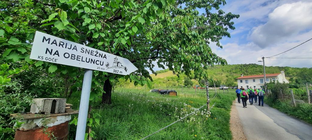 Pohod smo začeli pri slapenskem mostu in se ozirali proti cilju; daleč je, daleč romarska cerkvica; pa je kar šlo – korak za korakom po cesti, besede za besedami o vsem mogočem, ki nam niso omogočale, da bi hodili v gosjem redu, a smo varno prišli v Lože. Med hišami, mimo globokega jarka, ki postaja del infrastrukture v vasi, nato navkreber po cesti, ki je počasi prešla v makadamsko pot, še nekaj ovinkov in dospeli smo na Goče.