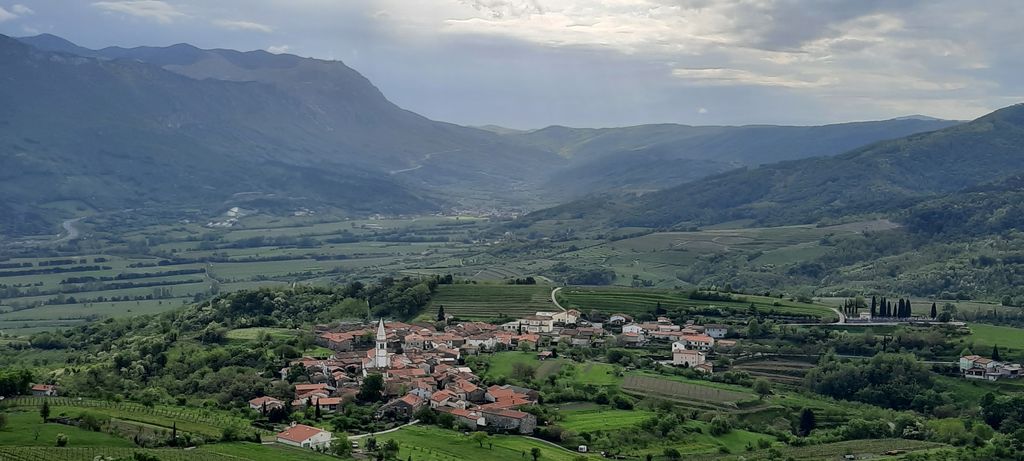 To nekdanje bogato naselje, grajeno v obliki Andrejevega križa, je z vseh strani zaprto. Na stopnišču pred šolo, značilno grajeno za časa italijanske zasedbe našega ozemlja, smo postali nekaj minut. Nato smo šli po ozki gasi in opazovali kamnite hiše, za portoni se odpirajo večji borjači, prijazna domačinka nas je povabila, da se ustavimo, a časa je bilo ravno dovolj za prijazen pozdrav in spomin na skupno delo v „fabrki“. Obiska katere izmed številnih kleti ni bilo v našem itinerariju. Za vasjo smo se po obnovljeni cesti vzpenjali proti vrhu Obelunca. Cesta, nov zbiralnik vode, pogled na obnovljene hiše, na novogradnjo hotela in obnovljeno obzidje okrog cerkvice Marije Snežne so zgovorne pripovedi, da se v kraju vedno nekaj dogaja, da tu življenje ubira nove sodobne poti.