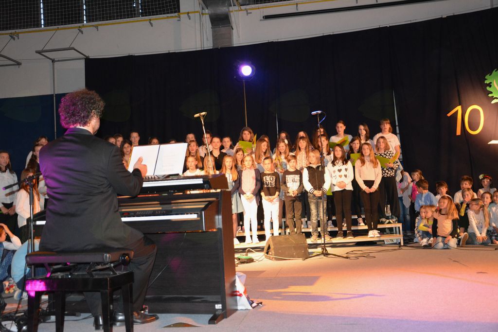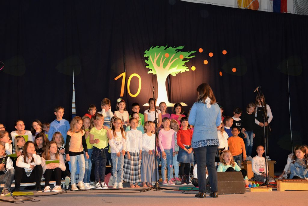 10. obletnici ustanovitve in delovanja naše šole. Prijeten in čustven ter popolno izveden nastop vseh sodelujočih nikogar ni pustil ravnodušnega. Slovensko ljudsko pesem je v program na različne načine vtkala režiserka prireditve Urška Kranjc.