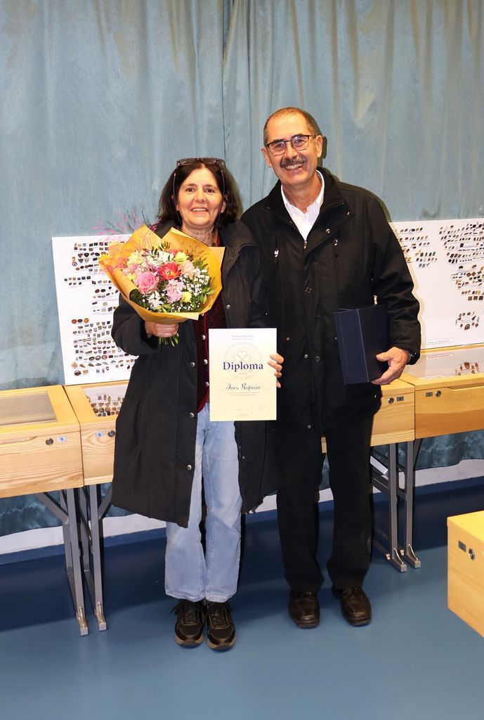 Med dosežki društva so številna priznanja in nagrade članov, ki so s svojimi zbirkami tekmovali na državnih in svetovnih razstavah. Med njimi naj izpostavimo Ines Ropoša, ki je pred kratkim na razstavi na Danskem prejela zlato priznanje z najvišjim številom točk za zbirko voščilnih razglednic. Predsednik društva Aleš Brecelj ji je s ponosom izročil priznanje ter kot dami tudi lep pisan šopek cvetja.