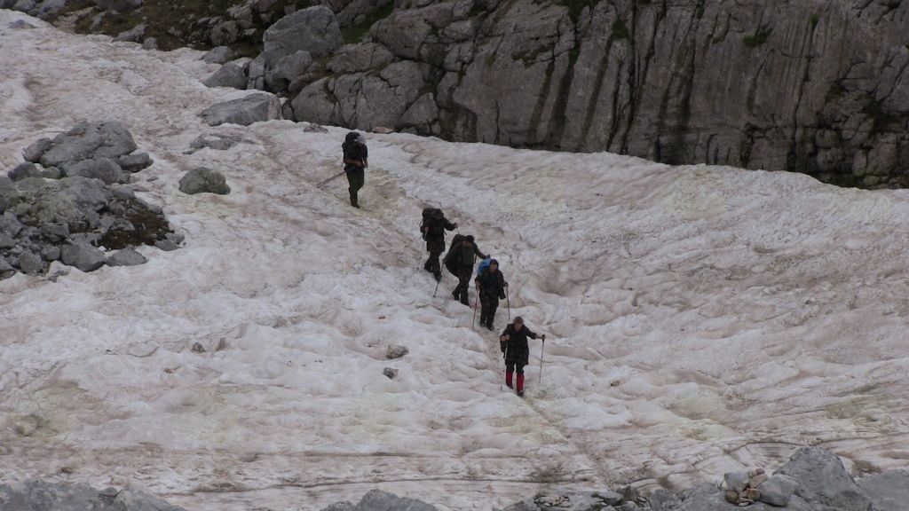 Ponoči in tudi zjutraj v sredo močno dežuje. Odhod sicer prestavim za dve uri, vendar nič ne pomaga – odrinemo v dežju! Na poti naletimo na poginulo mlado srno in kot zagrizen lovec takoj pokličem kolega iz tolminskega revirja, da jo pride iskat. Cesta se zravna in po desetih kilometrih pridemo do planine v Pologu, kjer oprtamo velike nahrbtnike in vse kar potrebujemo za več dni pohoda - alpinistično čelado, vrvi, vponke, cepin …