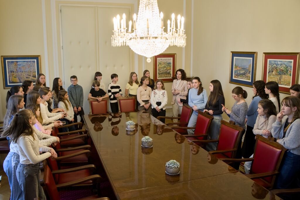 Po nastopu je predsednica Nataša Pirc Musar zbor prijazno povabila v svojo pisarno. Tam je skupaj z mladimi pevci zapela pesem Dan ljubezni ter z veseljem odgovorila na nekaj zanimivih vprašanj. Pevce je zanimal predvsem njen motor, pevke pa bolj 'ženske' teme. Sledil je še ogled protokolarnih prostorov Predsedniške palače.