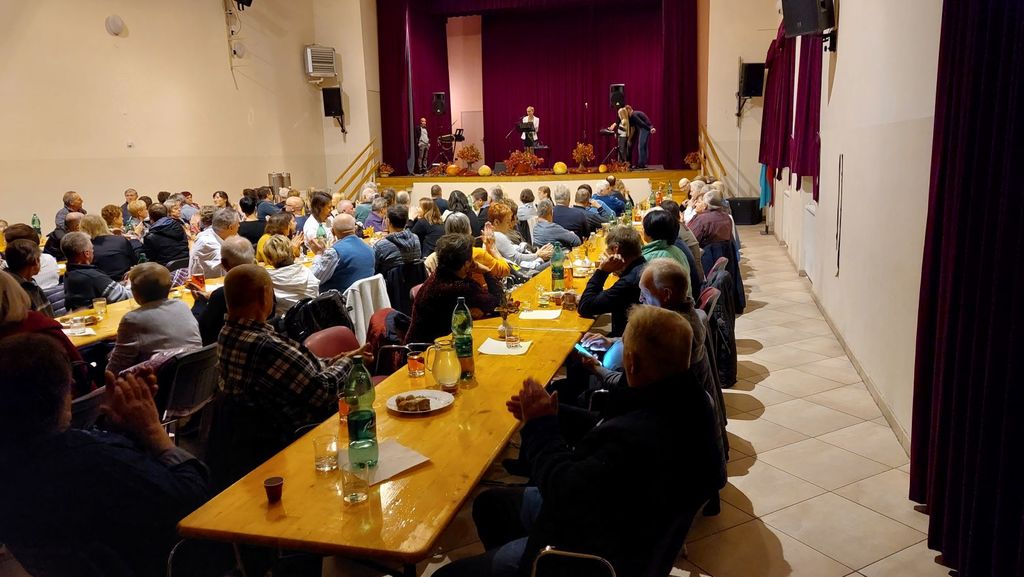 Kulturnemu programu je sledila okusna večerja, pa tudi dobrega peciva pridnih gospodinj ni manjkalo. Ker pa k razvedrilu spada tudi ples, smo se zavrteli tudi ob živi glasbi.
