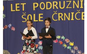 Tako sta v petek, 13. maja 2016, pozdravila zbrane goste povezovalca prireditve, petošolca Lara in Anej, ter napovedala svečan, pester otroški program, ki so ga pod mentorstvom učiteljic in učiteljev oblikovali učenci Podružnične šole Črniče, k sodelovanju smo povabili tudi oktet Sotočje ter nekdanje učence naše šole.