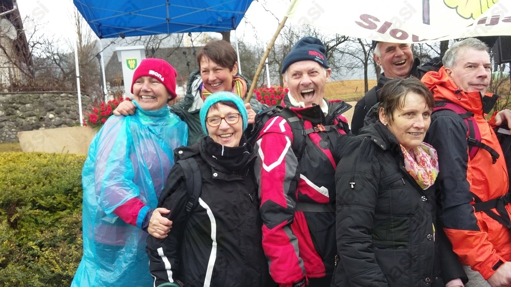 Kljub dežju, megli in mrazu smo prešernega razpoloženja zakorakali ob Blejskem jezeru.