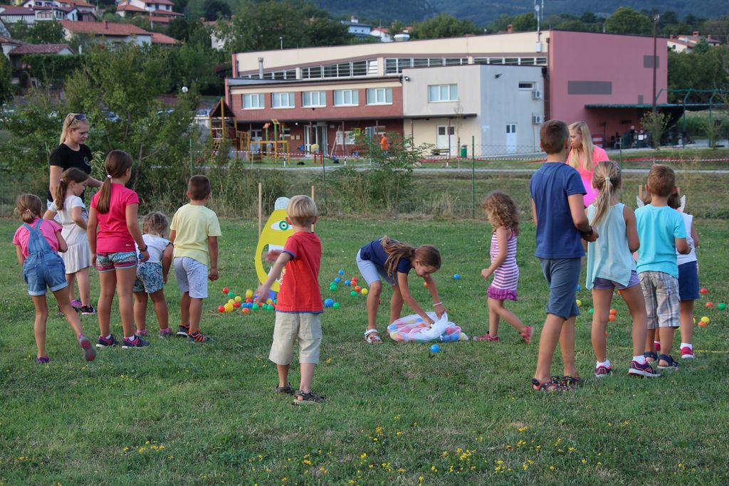 Karte skoncentriranih kvartopircevso vedno glasneje udarjale ob mizo, medtem pa se je na travnatem igrišču odvijal otroški program. Veselo rajanje se je začelo s plesom ob poskočni glasbi, kjer so se otroci razgibali in osvojili nove plesne gibe. Po končanem ogrevanju in premagani zadržanosti so jih animatorji razdelili v dve starostni skupini. Naloga najmlajših je bila, da zajčku prinesejo čim več korenčkov. Da pot do cilja ne bi bila preveč enostavna, so morali premagati različne ovire, ki jim niso predstavljale nobenih težav. Prav vsi so prišli do konca poligona in tako staršem in ostalim prisotnim pokazali svoje spretnosti. Malce starejši otroci pa so se spopadali z malce težjimi izzivi. Pri prvi nalogi so poskušali spraviti jagodo v kozarec, sledila je krompirjeva bitka in hranjenje pošasti z žogicami. Njihovo zbranost pri opravljanju izzivov je zmotilo radijsko vodeno letalce, ki je otrokom dostavilo prav posebno sporočilo. V bližini so morali poiskati pismo in lov na zaklad se je začel. Na tem razburljivem potovanju so jih čakale uganke, premetanke, zemljevidi, navodila, streljanje z lokom in ostale dogodivščine, ki so jih pripeljale do končnega cilja. Pri otroških igralih jih jenamreč pričakal skrivnostni junak Tabadu. Čestital jim je za dobro opravljene naloge in jim povedal, da je že res, da so našli skriti zaklad, še bolj pomembno pa je, da so našli prijatelje. Vsem otrokom, ki so sodelovali v otroškem živžavu, je nato s pomočjo animatork podelil sladkarije, se jim zahvalil za družbo in se fotografiral z njimi.