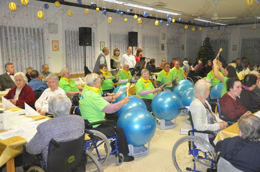 Pripravili smo pester kulturni program, kjer ni manjkalo dobre glasbe in smeha. Uvodoma se je predstavil naš hišni Žoga bend, ki je s kuhalnicami zabobnal na žoge in nas ogrel za nadaljnje druženje. Sledil je nastop osemletne Melanie, učenke drugega razreda Osnovne šole Šturje. Predstavila se je z igranjem na violino, ki jo je pričela igrati že z rosnimi šestimi leti, in sedaj pridno vadi, da bo nekoč uspešna glasbenica. Nikakor pa ne smemo pozabiti domskega zbora Vipavski vrabčki pod vodstvom gospe Nives Ferjančič, ki nam je zapel tri pesmi. Naslednja se je  predstavila dramsko-pevska skupina Zarja, ki je letos praznovala deseto obletnico. Zaigrali so skeč, v katerem moški in ženska iščeta partnerja preko ženitnih oglasov. Z zanimivim dialogom sta nas tako nasmejala Nevenka Vidmar in Peter Žgavec. Poleg vseh naštetih nas je obiskal tudi mladi Timotej Mikuž iz Podkraja pri Colu, ki zelo rad poprime za harmoniko in je pred kratkim zaključil osemletni program glasbene šole. Navdušil nas je s svojim spretnim igranjem, tako da verjamem, da bo sejal veselje in dobro voljo še na veliko zabavah. Tudi letos smo podelili skromne zahvale tistim stanovalcem, ki so kakorkoli pomagali in sooblikovali življenje v Domu v iztekajočem letu. Sledil je nagovor direktorice Tanje Stibilj Slemič, ki nas je z lepimi besedami in zdravico popeljala v »novo leto«. Izkazalo se je tudi naše osebje iz kuhinje, ki nam je pripravilo slastno večerjo kot spomin na dobre stare čase. Sledil je srečelov ter druženje ob glasbi z našim hišnikom