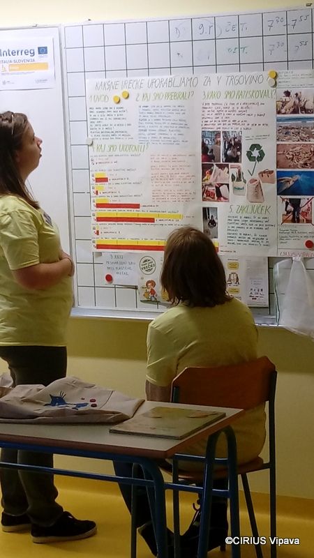 Po novem letu smo se s skupino učenk posvetili raziskovalni nalogi z naslovom Kakšne vrečke uporabljamo za v trgovino. Pri tem so sodelovale predvsem Mateja Hudorovič, Jana Lyondova, Ema Škrlj in Šeherzada Hodžić. Del raziskovalne naloge smo izvedli na terenu, v trgovinah Fama v Vipavi in Mercator center v Ajdovščini, kjer smo opazovali kupce. Beležili smo, koliko ljudi vrečko kupi in kakšno: plastično, neplastično, iz blaga, kartona, razgradljivo. Beležili smo, koliko ljudi ima vrečko s sabo, koliko ljudi nese izdelke iz trgovine v roki ali v nakupovalnem vozičku. V obeh trgovinah so nas prijazno sprejeli in podprli naše delo. Med nastajanjem naloge smo brali slikanice na temo ekologija ter pogledali veliko videoposnetkov, kjer smo spoznali, kako plastika škoduje živalim, predvsem pticam in živalim v morju. Prebrali smo zgibanko Ministrstva za okolje in prostor z naslovom Kakšno vrečko imam … Ugotovili smo, da so ljudje kar prijazni do narave in večinoma odpeljejo izdelke v nakupovalnem vozičku do avta ali pa prinesejo v trgovino svoje vrečke iz blaga.