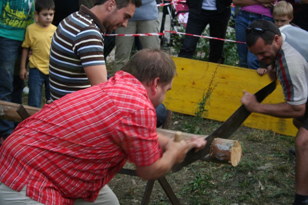 Za tekmovanje v žaganju debla s 'šijonom' je bilo nekoliko manj zanimanja. Mogoče zato, ker nam doma tega ni več treba početi. Med moškimi sta zmagala Valter Grilanc in Andraž Paliska. Ženske so bile v tej disciplini enakovredne in sta kar dva para dosegla popolnoma enak čas. To so bile Katja Vodopivec in Marinka Antonič kot prvi par ter Neva Vodopivec in Majda Furlan kot drugi par. Nagrada za zmagovalke je bila tekmovanju primerna. Meter drv! Zmagovalke so si jih z veseljem razdelile, grele pa bodo v Kamnjah.