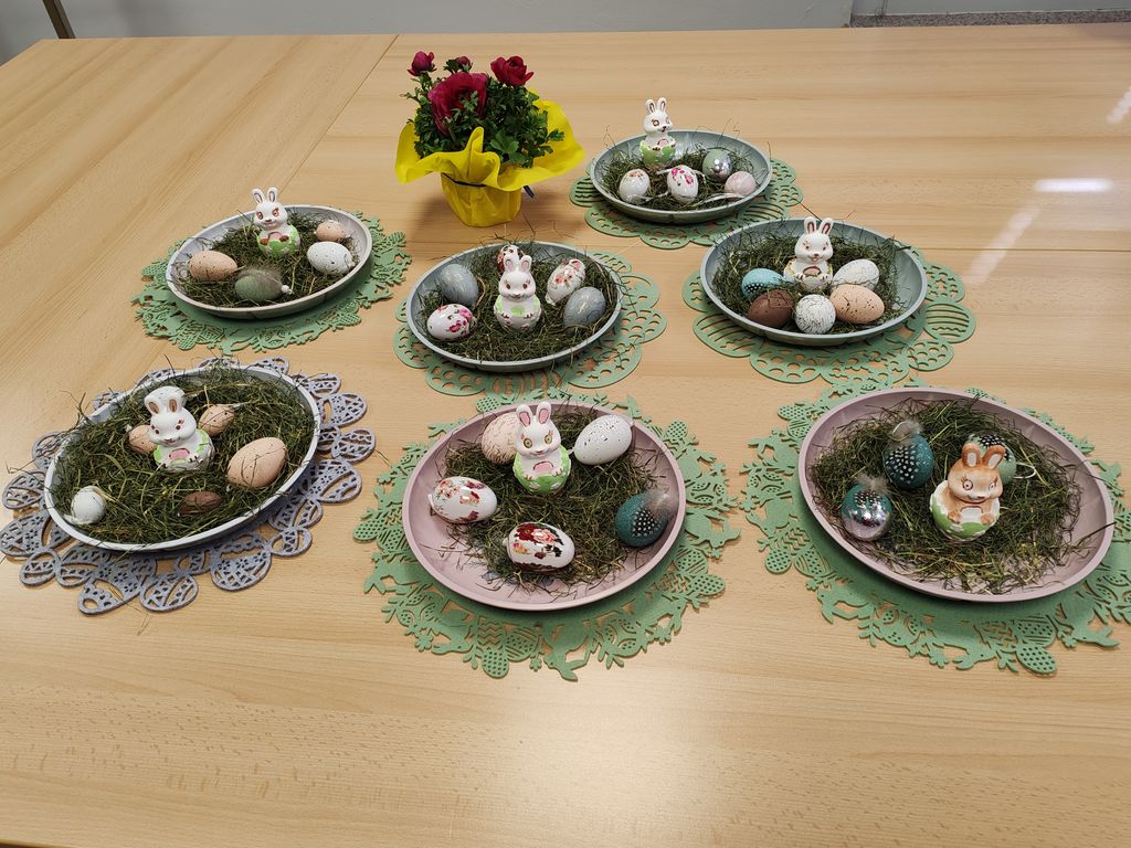 Člani Društva invalidov Ajdovščina – Vipava smo se 8. aprila zbrali v poslovnih prostorih na velikonočni delavnici. Pridni prsti so hitro začeli ustvarjati lepe izdelke. Še pomembnejše pa je druženje s sebi enakimi. Med živahnim klepetom smo si izmenjale stare in nove načine barvanja velikonočnih jajc - pirhov. Na mizi ni manjkalo sveže pecivo članice, ki nas vedno preseneti s svojimi pekovskimi mojstrovinami. Vse ponosne, da znamo uporabljati pametni telefon, smo seveda pregledale vse slike vnukov in sveže posejane zelenjave. Vzdušje je bilo tako pisano, kot so pisani velikonočni pirhi in to šteje! Med udeleženci delavnice so tudi pravi umetniki in kako ne bi pogledal malo tja k njim, da dobiš kako idejo za svoj izdelek. Smeh! Kmalu smo vse imele končni izdelek, ki smo ga s ponosom odnesle domov.