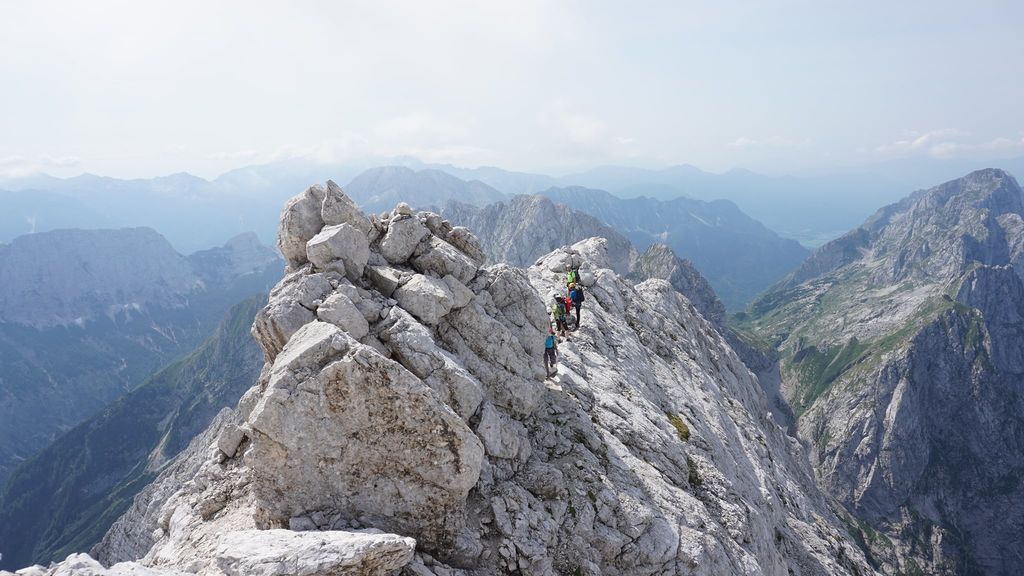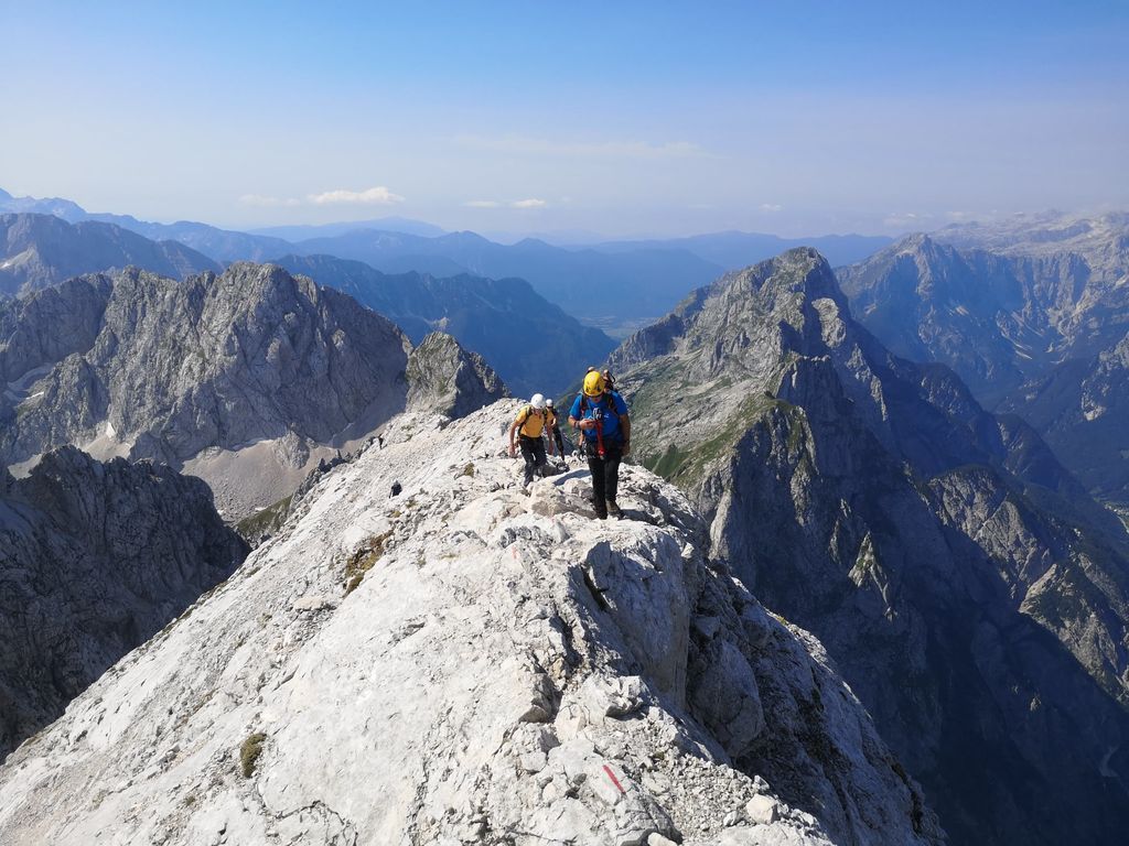 Vodnik Gregor Vodopivec je o pohodu na 2.645 m visoki Jalovec zapisal: Odlična vremenska napoved za nedeljo! Zadnja potrditev, da se v zgodnjih jutranjih urah odpeljemo v dolino Trente, natančneje še malček naprej, do parkirišča pri koči pri izviru Soče. Po opravljeni jutranji pripravi na turo, v strnjeni skupini zagrizemo v strmino, ki je pred nami. Naklon terena, tempo in zunanja temperatura hitro poskrbijo, da za nami ostajajo le sledi kapljic znoja. Pogledi na okoliške, z jutranjim soncem obsijane gore, nam dajo dodatno spodbudo za napredovanje in kaj kmalu se že opremljamo pod skalno pregrado, ki nam jo je kmalu zatem uspelo tudi premagati. Mimo izhoda iz J. Ozebnika smo se podali pogumno naprej proti razglednemu grebenu, od tam pa proti najvišji točki nedeljske ture! Naš trud je bil na vrhu poplačan s prekrasnimi razgledi! Sledil je še previden spust proti našemu jutranjemu izhodišču, ki pa smo ga opravili mimo koče pod Špičkom. Po varni vrnitvi v dolino smo si segli v roko, čestitali za uspešno opravljeno turo in zaželeli čimprejšnjega ponovnega snidenja