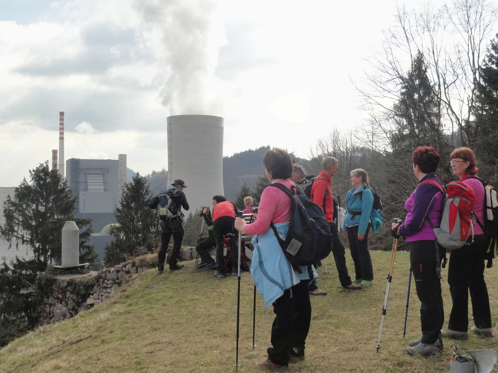 V nedeljo, 12.marca 2017, pa smo jo mahnili v Šaleško dolino. Poln avtobus vedrih obrazov je motril prebujajočo se naravo. Bistvene podatke o poti smo izvedeli na avtobusu odvodnikov Boža in Mirka, tako smo lažje dočakali visoke dimnike, ki so oznanjali, da smo blizu. T 6 se nam je smejal že takoj za zadnjim ovinkom. Čeprav nam mesto Šoštanj, naš cilj, ni bilo neznanka, smo vedno znova presenečeni, ker se nam dozdeva, da je jezer vedno več oziroma da so vedno večja. Prva domneva ne drži, druga bi lahko imela realno osnovo.