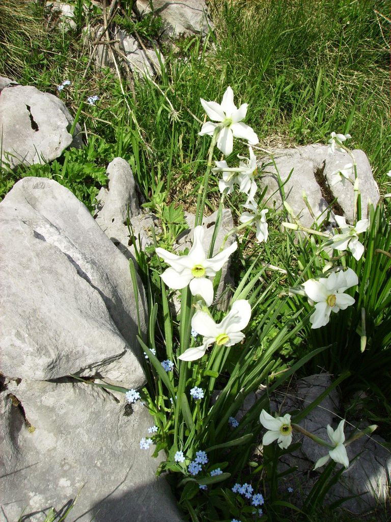 Gorski narcis – jurjevka, ključavnica, bedenica (Narcissus poeticus ssp. radiiflorus) je nežna lepotica negnojenih travnikov. Snežno beli cvetni listi so klinasto zoženi, na sredini cveta je rumen, rdeče obrobljen privenček, iz katerega pogledujejo prašniki. Znanstveno ime je dobila po starogrškem junaku Narcisu, ki se je zaljubil v svojo podobo v vodnem odsevu. Gorenjsko ime ključavnica je po cvetnem popku, ki je klinasto upognjen in spominja na ključ. Jurjevka je primorsko ime po času cvetenja ob sv Juriju, bedenica pa v glavi slovenske kokoške. Strupena, zavarovana lepotica krasi ekstenzivne suhe travnike po (vsej) Sloveniji. Verjetno so najbolj poznane tiste s Krasa in z Golice. Kako gre skupaj strupenost narcis in trava za živino? Ko rastlina odcveti, čez čas propadejo tudi listi, čebulica pa počiva do naslednje pomladi. Dišeča trava pa je okusna krma. Žal se travniki z narcisami zaraščajo. Pa jih vseeno ne trgajmo. Tudi na Čavnu ne.