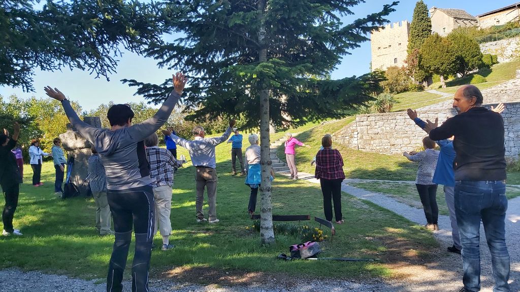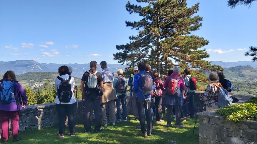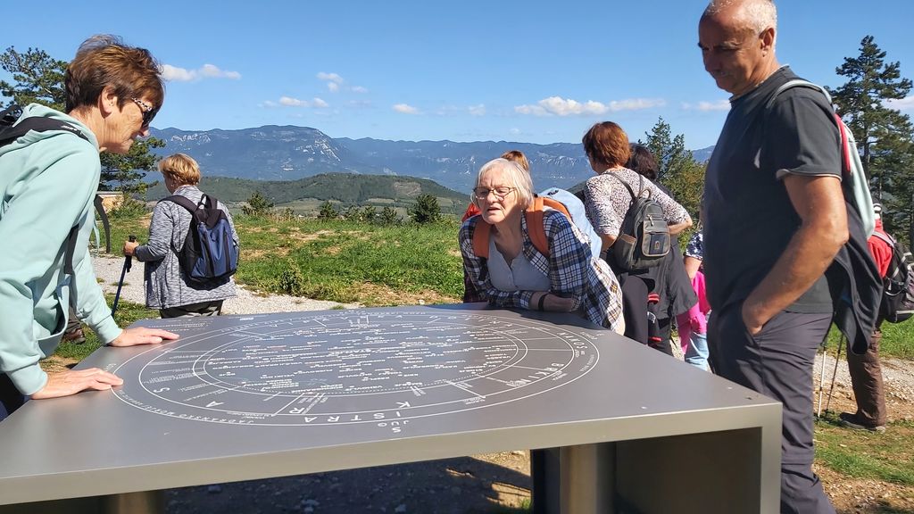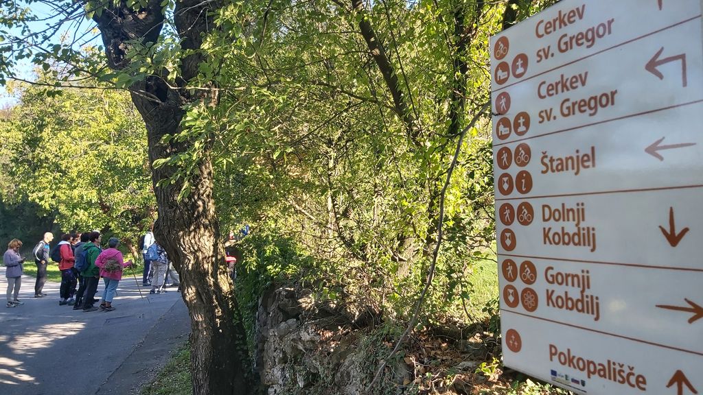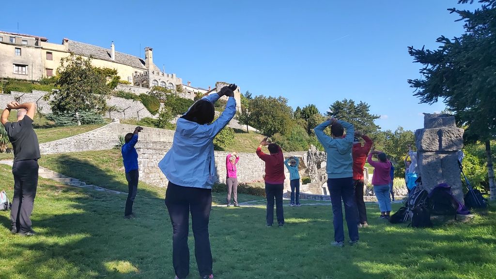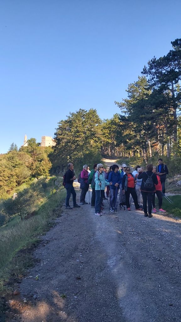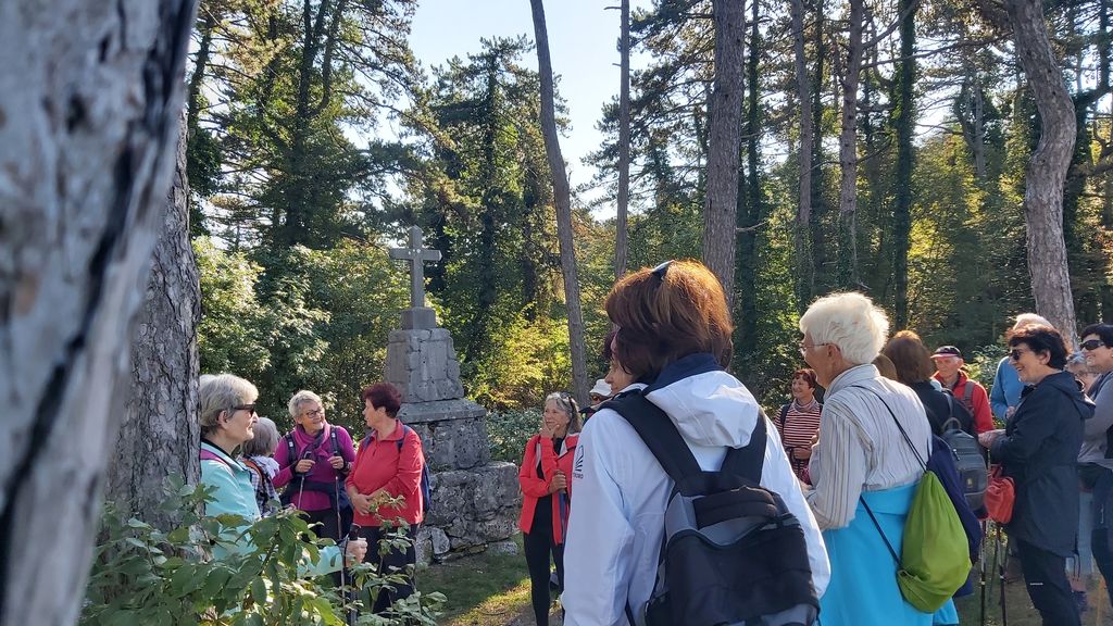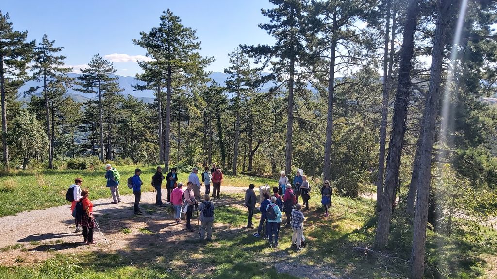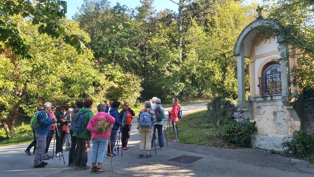 Hodili smo se po krožni panoramski poti, se povzpeli na Sv. Gregor, kjer je pokopan Maks Fabiani in njegova  rodbina, ki je vladala na tem območju Krasa. Po poti skozi borov gozd smo se ustavljali ob znamenjih in se pogovarjali o nujnosti druženja, rekreaciji in sploh 'športanju' v naravi.