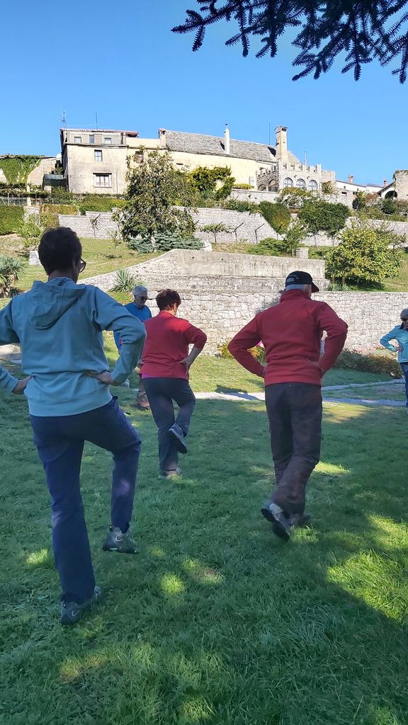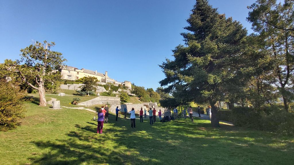 Povzpeli smo se do Ferrarijevega vrta, ki je nastal kot dopolnitev Vile Ferrari. Maks  Fabiani ga je preuredil za svojega nečaka  Enrika  Ferrarija in njegovo družino. Slišali in videli smo zanimivosti parkovne ureditve tistega časa. Sprehod po parku smo zaključili z daljšo telovadbo na mehki travi, ki so jo vodile razgibavanja vešče mentorice.
