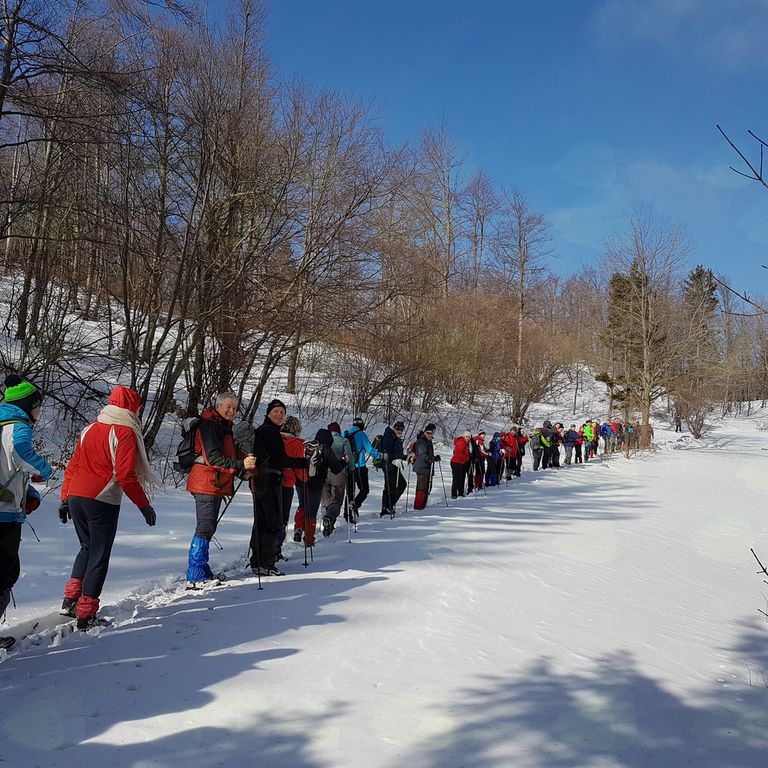 Med vsemi 22. pohodi, ki jih organizira društvo DEŠK, smo imeli tokrat res lepo zimsko vreme. Pred Domom krajanov se nas je zbralo okrog 70 pohodnikov. Širom po Sloveniji so se odvijale razne pustne povorke, medtem ko smo izgledali planinci v popolni zimski opremi tudi kot maškare. V zaledju vasi je bila samo siva trava, po pobočju se je plast snega večala tako, da je pri Zagriži merila že 15 cm.
