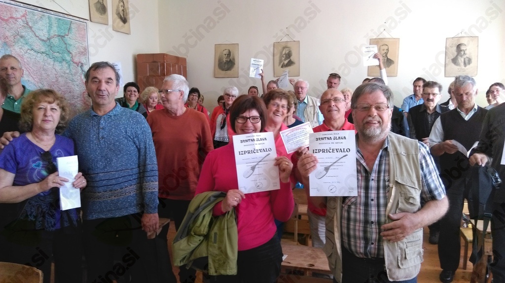 V jutranjih urah smo se iz Ajdovščine in Vipave odpeljali mimo Ljubljane in Novega mesta do Radovice, kjer smo obiskali staro šolo BRIHTNA GLAVA. Pri pouku smo mirno sedeli v klopeh in gospa tovarišica učiteljica, nas je poučila o Beli krajini in njenih znamenitostih. V roki je vihtela palico in v oslovskem kotu nas je čakala koruza za klečanje. Tudi učenci smo morali sodelovati, kajti res smo bili v letu 1950. Po končanem pouku smo prejeli izpričevala o uspehu. Žal, nekateri razreda niso izdelali in se bodo morali vrniti nazaj v šolo.