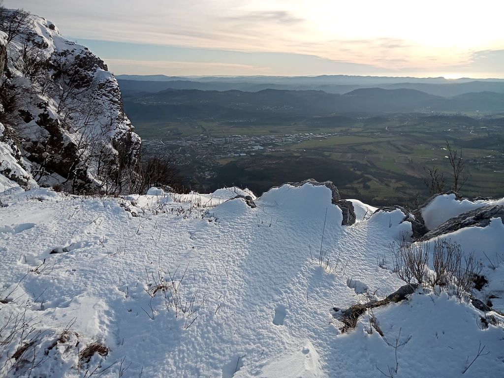 Med potjo smo se sprehodili do roba, kjer smo občudovali Vipavsko dolino (Ajdovščino z okolico). Dan se je prevešal v pozno popoldne in smo lahko opazovali še zahajanje sonca. Nadaljevali smo pot proti Otliškemu oknu in potem še proti kamnitemu polžu. Se splača prebrati vse informacijske table na tej poti. Po vseh ogledih smo se vračali nazaj proti Otlici. Moram reči, da ni bilo nobenega problema s hojo in je tura prav prijetna tudi z manjšimi otroki. Vse skupaj smo hodili približno poldrugo uro.
