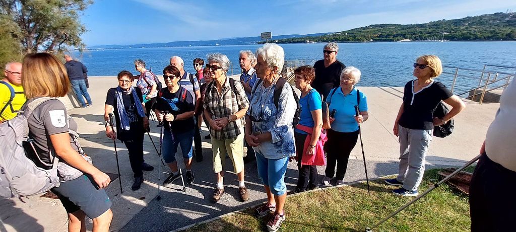 S plaže smo se povzpeli na rob klifa. Med sprehodom ob vinogradih, s pogledi na morje, po učni poti pod borovci in hrasti. Po stopnicah iz peščenjaka smo se spustili na obalo in si ogledali flišne stene od spodaj. Sprehodili smo se skozi gozdiček puhastega hrasta, ki je še ostal od nekdanjega gozdnega pokrova Debelega rtiča. Izvedeli smo, da imamo v morju pod Debelim rtičem mini koralni greben s kamenimi koralami. Sprehod skozi park Mladinskega zdravilišča do morja in zaslužena malica. Potem pa sprehod čez, pravzaprav, nad, slanim travnikom pri sv. Katarini. Za piko na i še sprehod do pokopališča školjk in polžev ob Luki Koper. Male bele čapljice se niso dale motiti pri brskanju po slanem močvirju, seveda v varni oddaljenosti. Ob vrnitvi še postanek za notranje potrebe. Voznik Aljaž, ki nas je že večkrat peljal, nas je varno iztovoril v Wajdušni.
