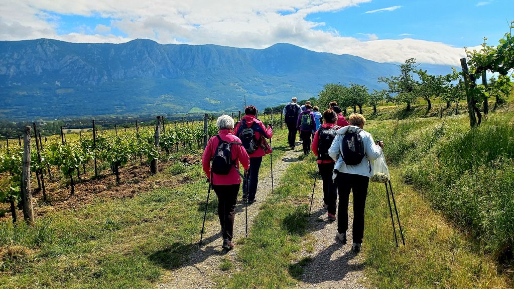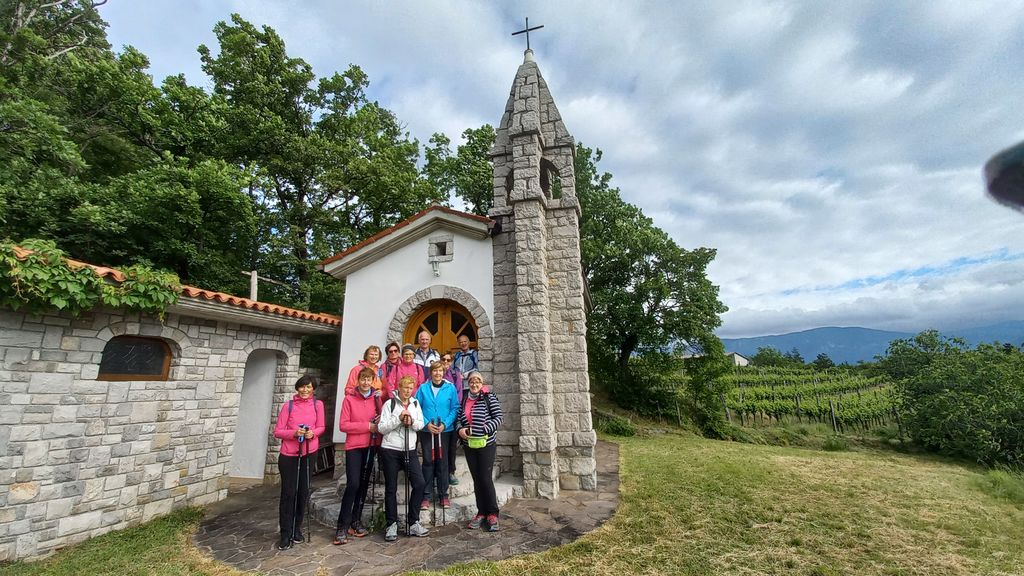 Mimo vinogradov smo se spet spustili v dolino, prečkali potok in po lepi poti mimo kapelice med vinogradi prispeli nazaj v Podrago. Ogledali smo si to lepo, večini pohodnikov nepoznano vas, skozi katero teče Mrzli potok. Podraga ima lepo urejen spomenik padlim v NOB. Pohod smo po 8 km prehojene poti zaključili na parkirišču.