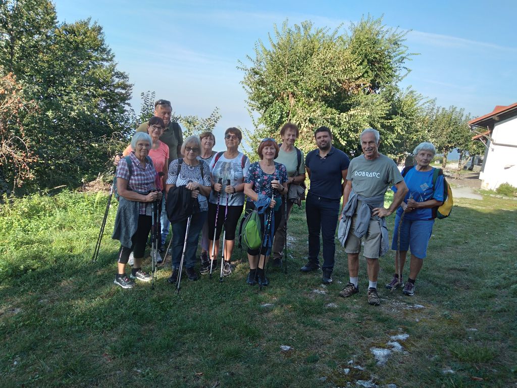 Zapeljali smo se pod Sinji vrh, kjer nas je prijazno sprejel lastnik penziona Kristjan Vidmar. Po ogledu slikarske razstave Umetniki za Karitas nas je popeljal v podzemlje, kjer so pred drugo sv. vojno Italijani začeli graditi vodovod, ki bi pripeljal na Goro hubeljsko vodo. Ostala sta dva vodohrama, ostalo opremo s cevmi vred pa so po 2. sv. vojni demontirali. Ob kratkem vzponu na Sinji vrh (1002 m n.m.) smo spoznavali in nabirali zelišča. Oh, te ustnatice, ki so si tako podobne: belocvetni gorski in vijoličasti liburnijski šetraj, dobra misel, aromatični popovec, odcvetela materina dušica, pravi pelin (ta pa ni ustnatica) ... Na vrhu razgled za Bogove - če ni mrča. Tako pa smo le pomahali morju in Triglavu, pozdravili Nanos, Srednjo goro, Trnovski gozd, Čaven, Kras in se odpravili še k škrapljam za Sinjim vrhom. Nekaj nas je zaokrožilo izlet še z gobami marelami, nabranimi na travnikih pod Sinjim vrhom.