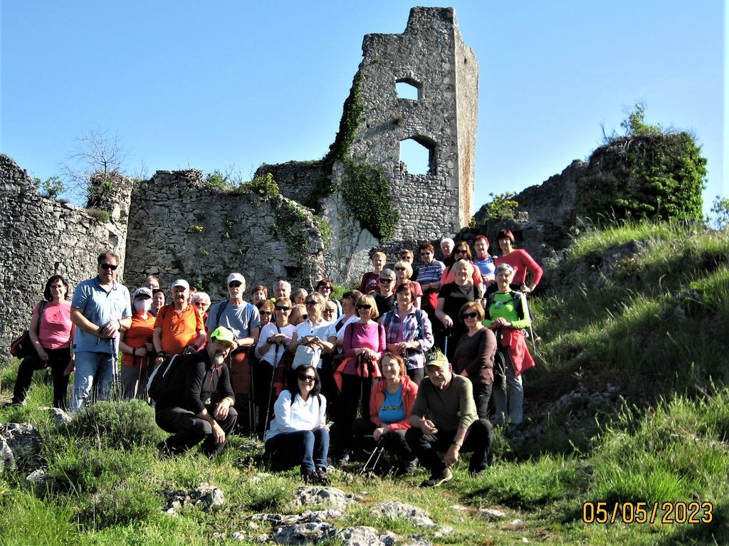 Na ajdovski občinski praznik je vodja kratkih pohodov Društva Most Vesna Bratina pohodnike popeljala v sosednjo občino, najprej na stari vipavski grad. Po enakomerno zložni poti iz jedra Vipave so razvaline nekdaj mogočnega gradu dosegljive po 140 premaganih višinskih metrih. Grad so že v 12. stoletju pozidali na izjemno strateškem kraju, saj sta kot na dlani oba kraka Vipavske doline - proti Razdrtemu in proti Gorici (z vsem gričevjem in hribovjem vred). Ker so okrog gradu posekali grmičevje, se zdaj ponuja izjemen (takorekoč tlorisen) pogled na Vipavo samo, in seveda obratno – grajske ostaline so opazne daleč iz doline. Toda šele na grajskem dvorišču se začuti nekdanjo veličino – pravokotno zasnovo s štirimi etažami in visokim stražnim stolpom, ki sicer kar precej 'iz plajbe' še skoraj po tisoč letih kljubuje težnosti. Grad je menjal nič koliko lastnikov, zadnji so bili Lanthieriji, ki so se v 17. stoletju odselili nižje (na mesto današnjega dijaškega doma škofijske gimnazije) in nato v danes obnovljeni dvorec na glavnem trgu.