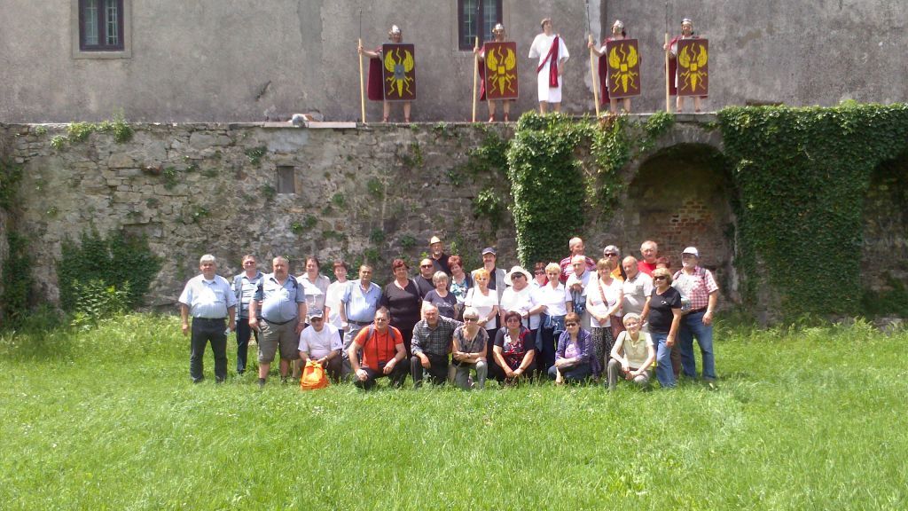 Nekaj pred dvanajsto so naši gostje zapustili Vipavski Križ in prišli v Ajdovščino. Predsednica društva je pohitela naprej, se preoblekla v obleko iz rimskih časov in vsem predstavila Ajdovščino kot nekdanjo Castro. Seveda je zgodovina zanimiva in je kaj pokazati. Nikjer v državi ni toliko ohranjenih stolpov, obzidij in vsega, kar nas domišljijsko z lahkoto popelje v tiste čase v prvem stoletju naše ere in naprej do konca rimskega imperija.