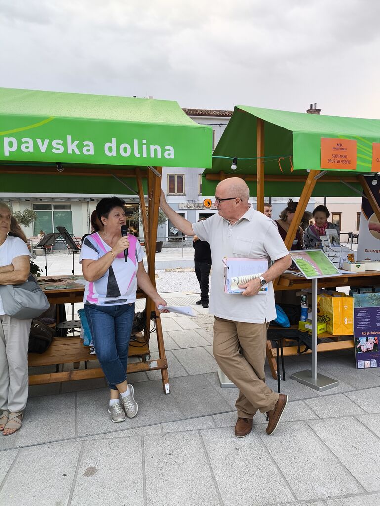 Povezovanje smo ponovno zaupali Janiju Kramarju iz Slovenskega društva Hospic, ki je poskrbel za hudomušnost. Poseben čar je dodala tudi turistična vodička, ki je obiskovalce popeljala skozi ulice in zgodbe Ajdovščine. Vzdušje je bilo napolnjeno z glasbo – kljub občasnemu dežju so Strunoslav, Harmonia, Kvartet 4F in učenke modernega petja razreda Martine Feri iz Glasbene matice poskrbeli za čustvene melodije, dogodek pa je zaokrožil plesni zaključek v ritmih Usak Patk Swing.