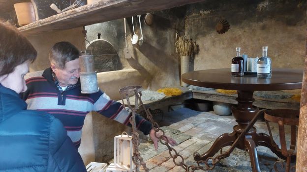 Pohod smo zaključili v krasnem ambientu kmečkega turizma Arkade Cigoj. Oni so nas navdušili s prijaznostjo, postrežbo, še posebej s toplim domačim kruhom, mi njih pa z Mihelino baklavo. Gospodar Jordan nam je razkazal hišo pršuta, kjer imajo sušilnico raznih domačih izdelkov, ter prostor z ognjiščem, ki je v celoti obnovljen v starem stilu. Hvaležni in zadovoljni smo se poslovili in odpravili domov.