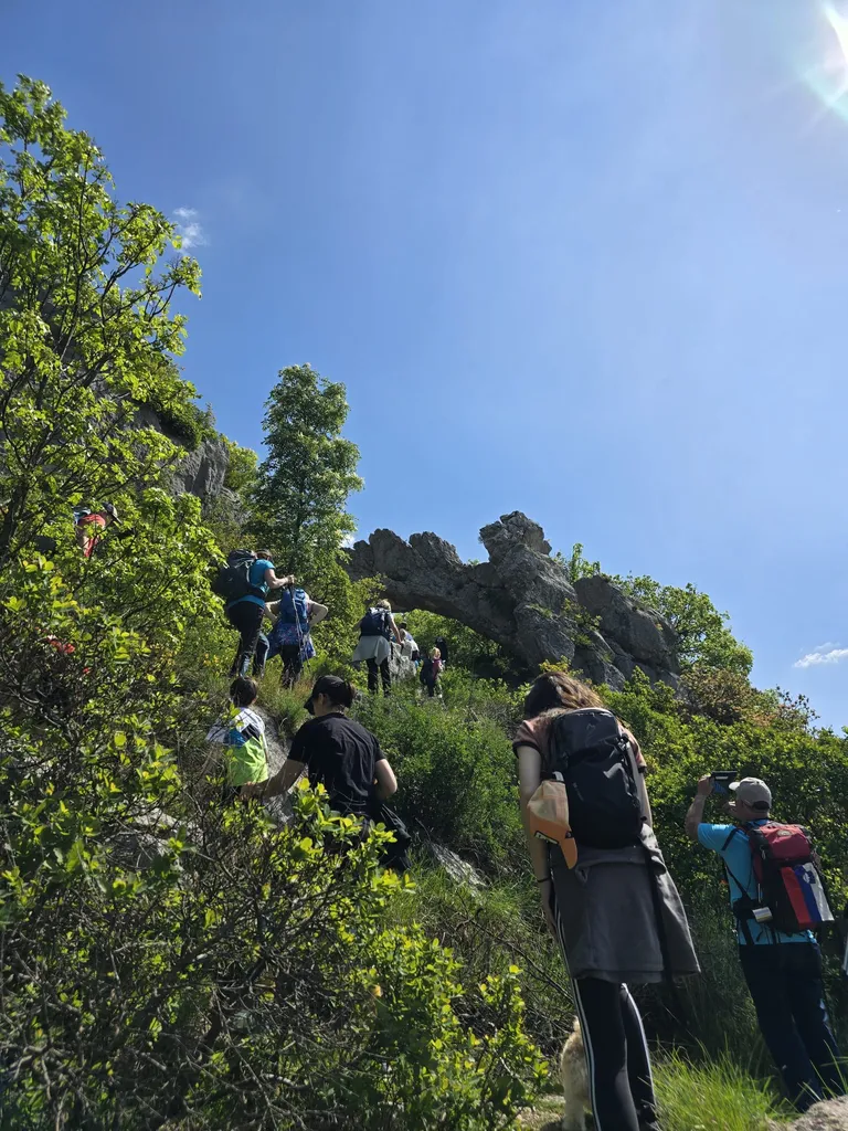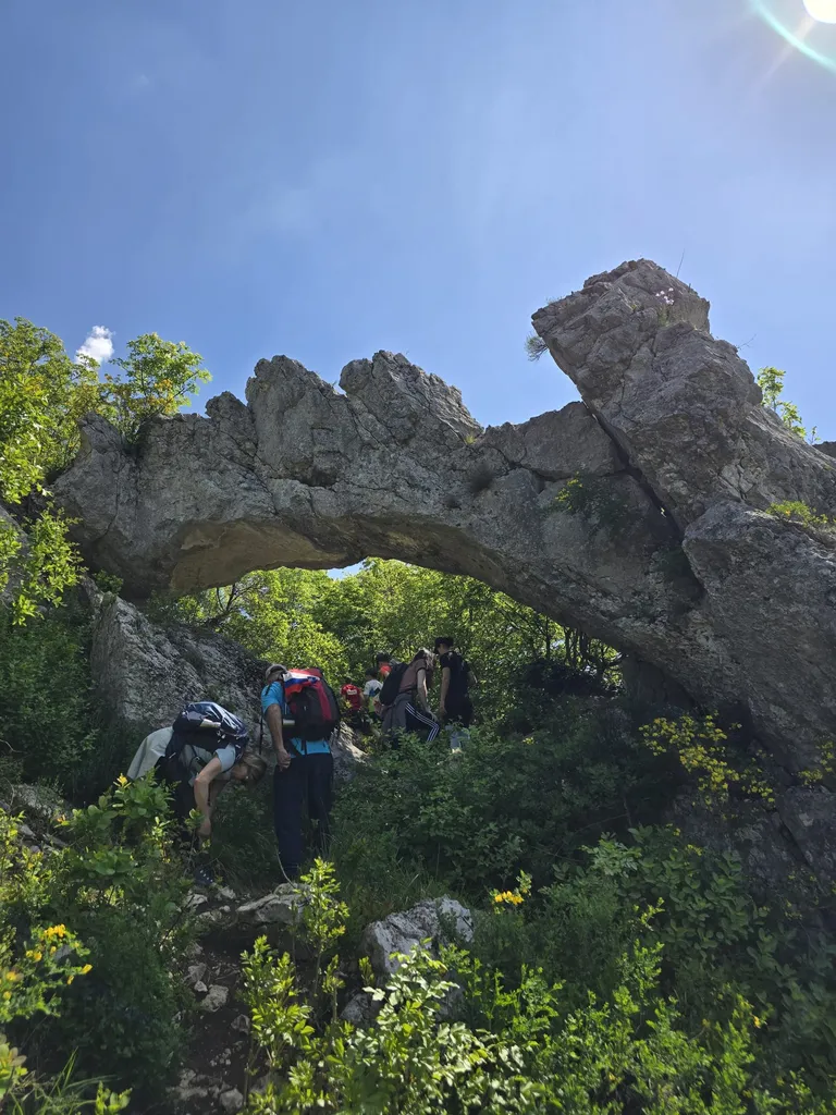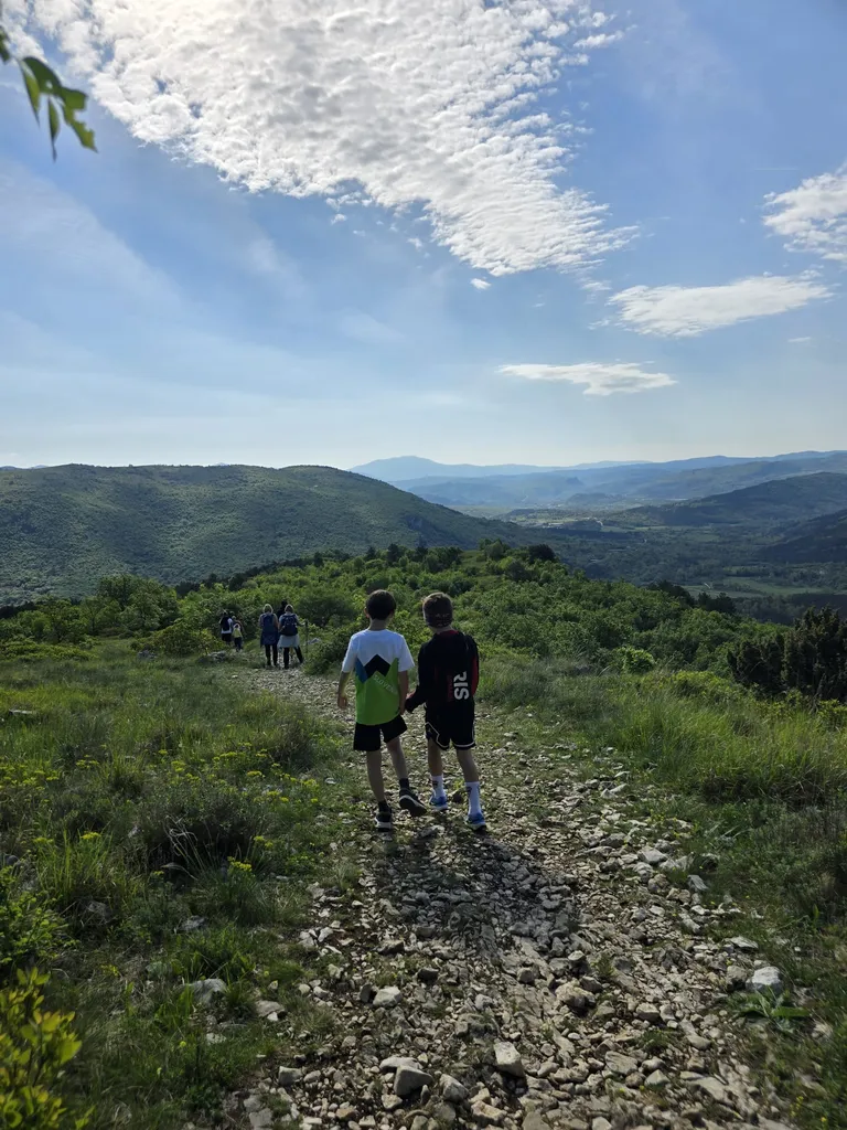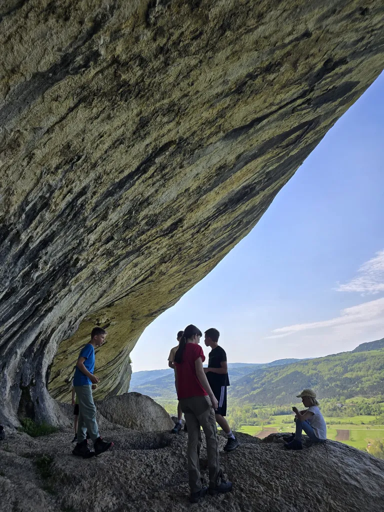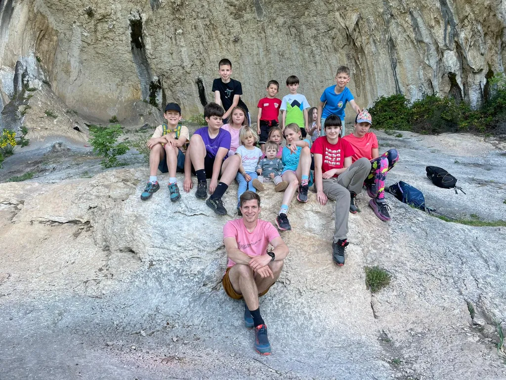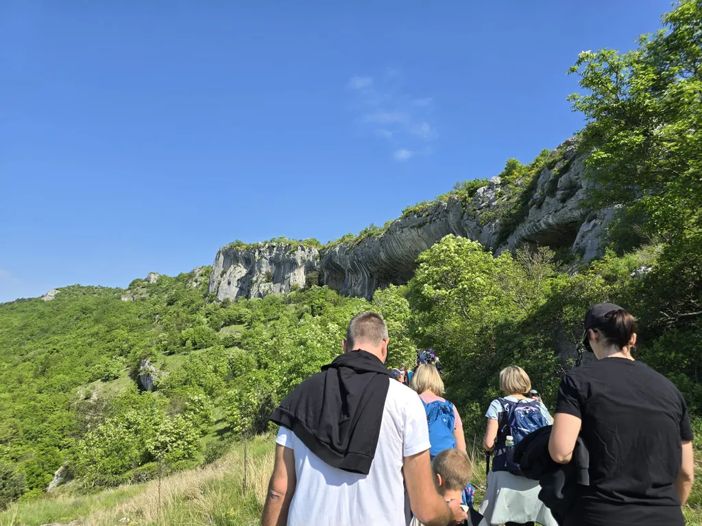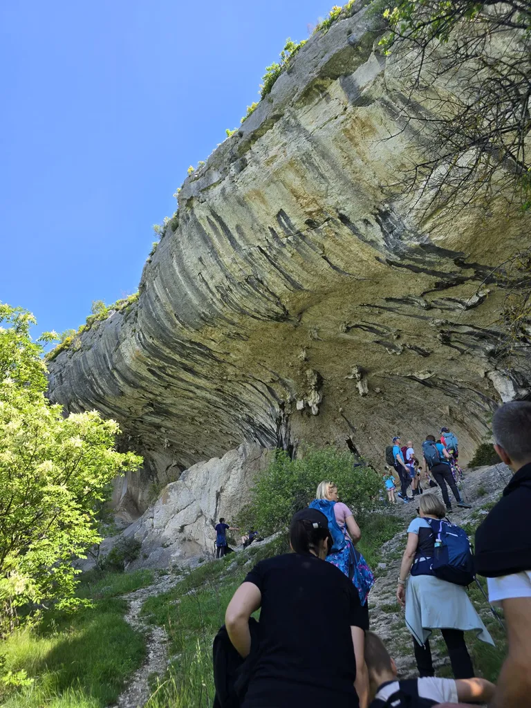 Napovedana sončna sobota, 18. 4. 2026, je kar klicala po novem planinskem izletu OŠ Danila Lokarja Ajdovščina v sodelovanju s PD Ajdovščina. Število udeležencev se iz izleta v izlet povečuje, kar verjetno pomeni, da vodniki za zdaj uspešno izbiramo zanimive ture, ki iz domačega udobja privabijo tako učence kot tudi njihove starše. Tokrat se nas je zbralo 31. Naš cilj je bil Kraški rob, natančneje naravna znamenitost Veli Badin, znana tudi kot 'ušesa Istre'.