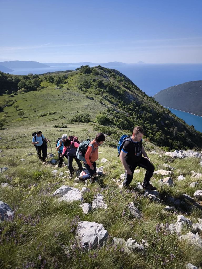 Nato pa nekoliko bolj strm vzpon, ki nas pripelje na rob. Odprejo se pogledi preko Cresa do Krka. Na jugu markantno pozira Televrin, najvišji vrh Lošinja, cela Istra je kot na dlani, ko si vsak z nasmehom na obrazih ogleduje našo današnjo naravno kuliso.